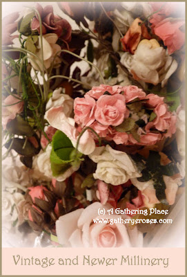 Now...I have tons and tons of vintage and older millinery blooms to work because I've collected them for years.  They truly add a special romantic touch to most of the things created in my AGP studio, but at the same time they can be very pricey.